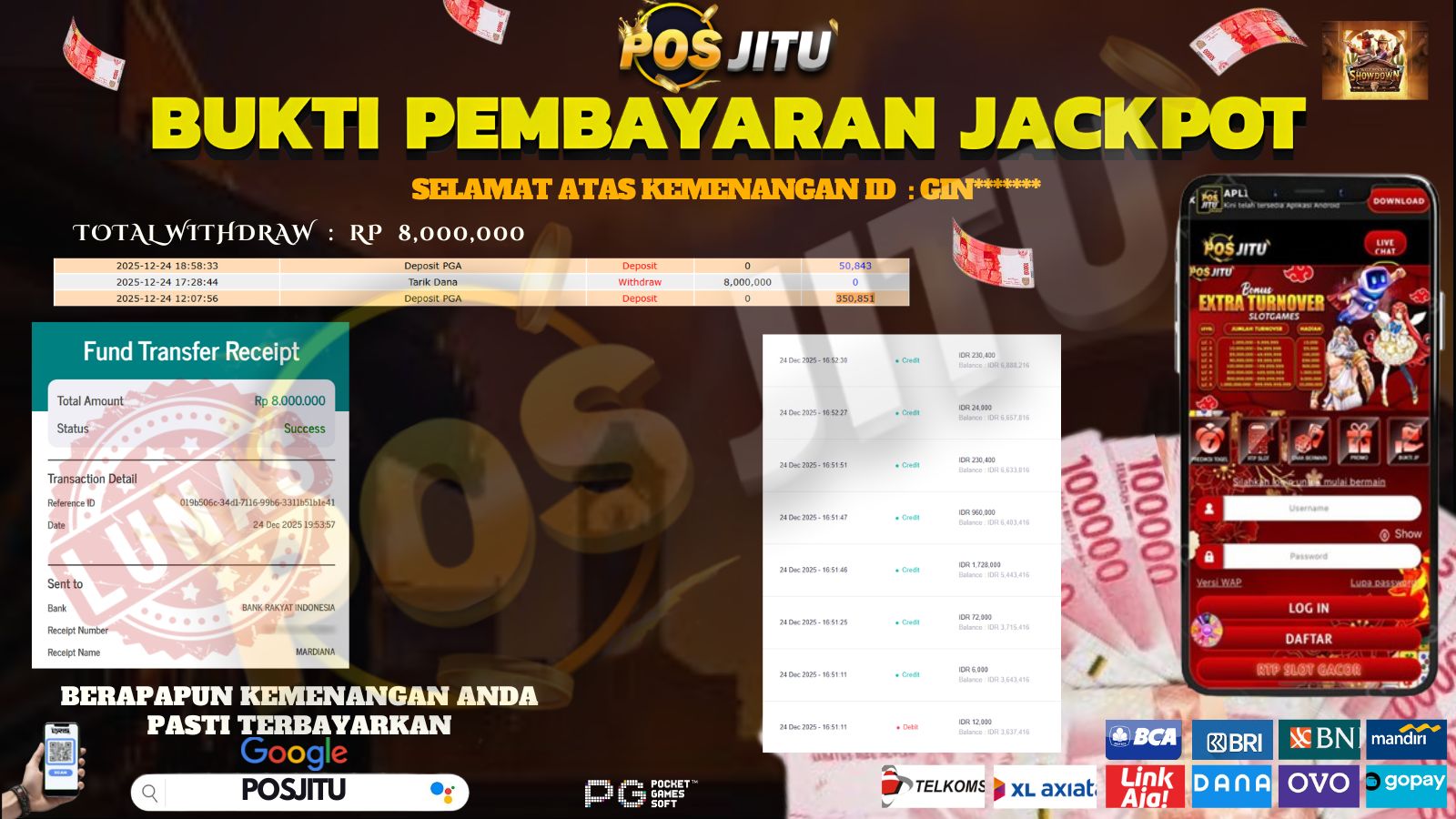 💵BUKTI PEMBAYARAN JACKPOT BONANZA GOLD Rp 52,000,000💵